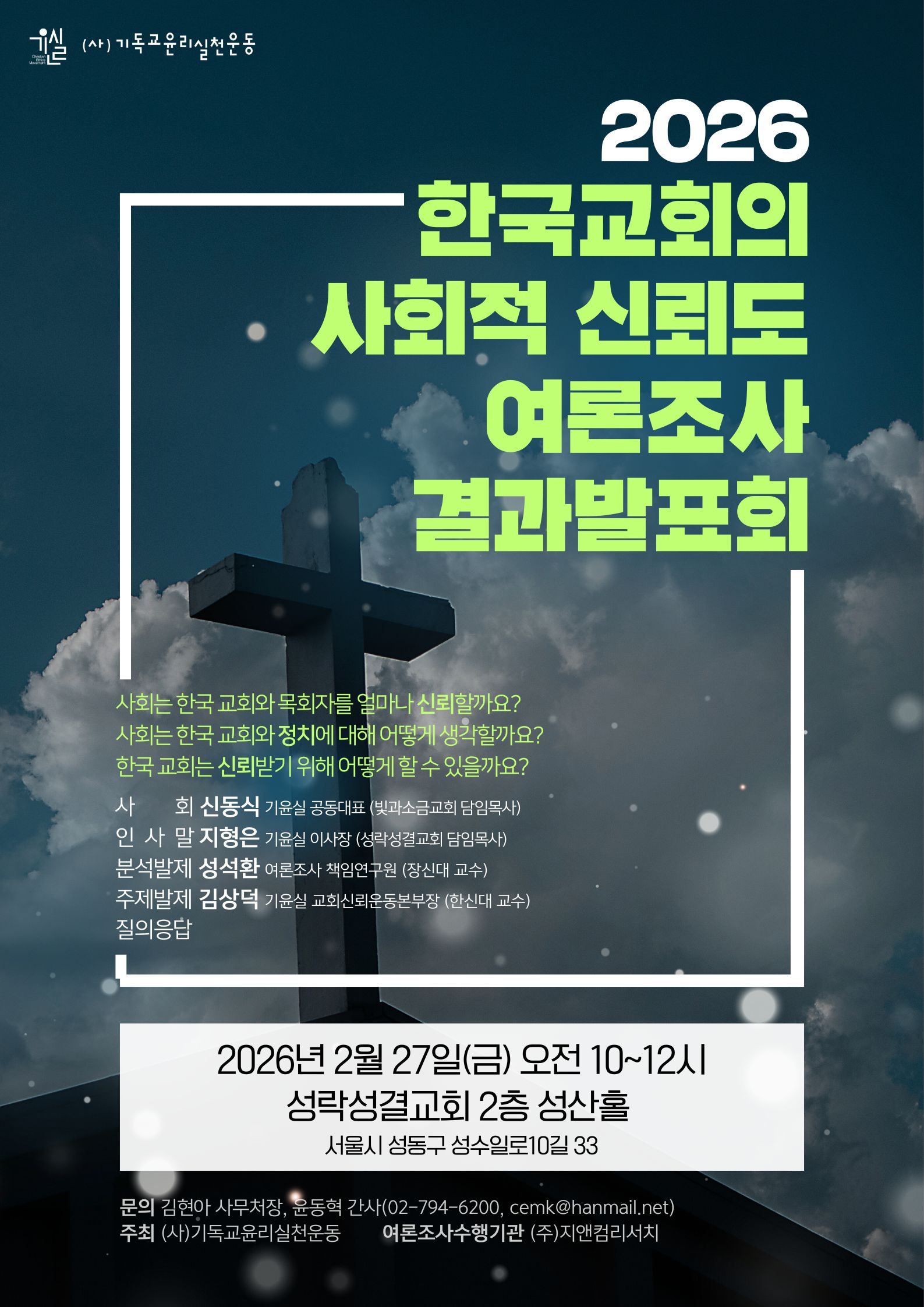 2026 한국교회의 사회적 신뢰도 여론조사 결과발표회(2/27)