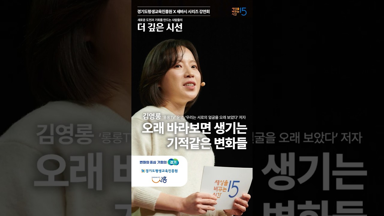 오래 바라보면 생기는 기적같은 변화들 | 김영롱 롱롱TV 운영, 작가 @longlongtv2023 세바시 2024.12.09 16:00 강연 소개 : 저는 한때 할머니가 언제 돌아가시나... 하는 생각을 한 적이 있습니다. 저도 깜짝 놀랐습니다. 몸과 마음이 지치니 소중한 ... 0