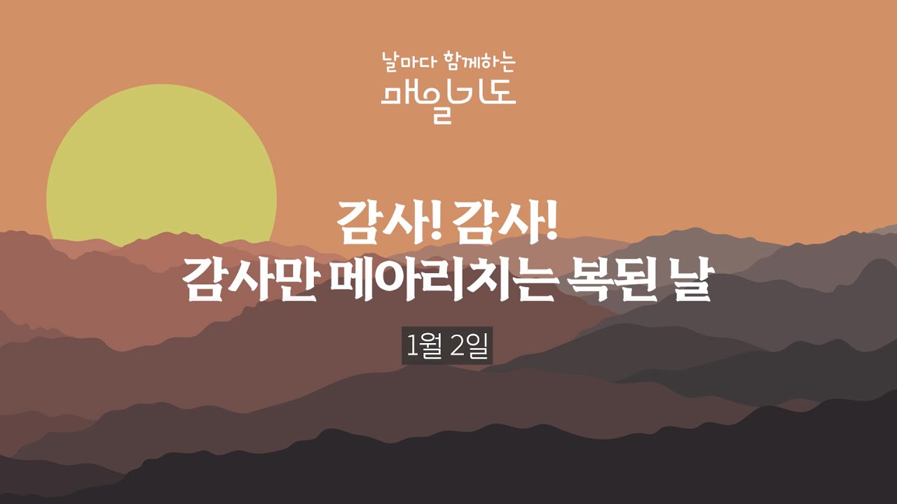 [매일기도] 1월 2일 목요일 | 감사! 감사! 감사만 메아리치는 복된 날 기독정보닷컴 2025.01.02 05:00 여호와는 나의 반석이시요 나의 요새시요 나를 건지시는 이시요 나의 하나님이시요 내가 그 안에 피할 나의 바위시요 나의 방패시요 ... 0