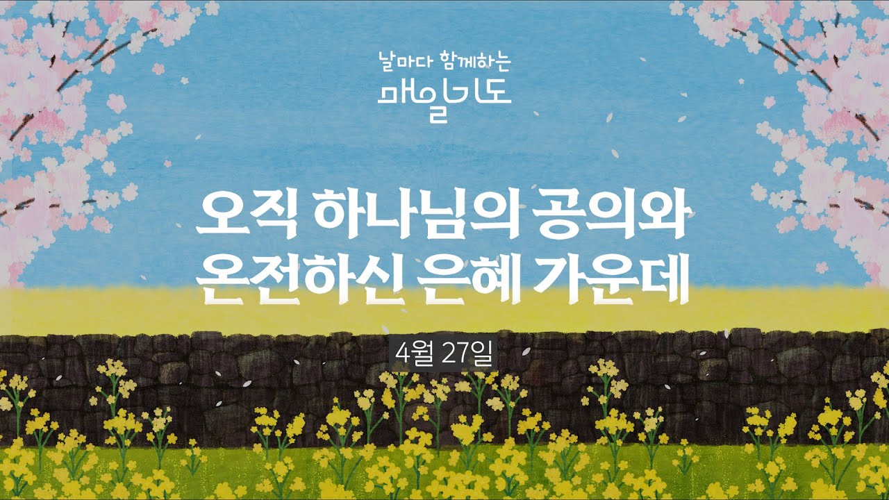 [매일기도] 4월 27일 주일 | 오직 하나님의 공의와 온전하신 은혜 가운데 기독정보닷컴 2025.04.27 05:00 은혜와 사랑이 풍성하신 하나님! 이 나라와 이 민족을 위하여 이 시간 간절히 기도합니다. 하나님, 이 땅에 은혜와 긍휼을 부어 주 ... 0