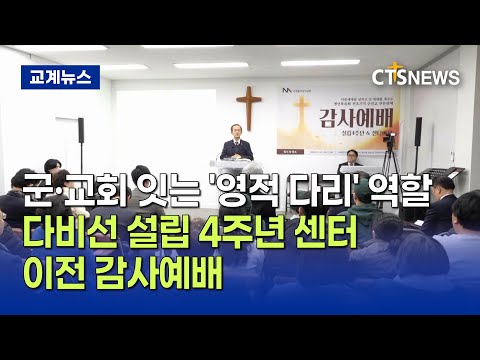 다세움비전선교회 4주년 센터 이전, 군 · 교회 잇는 영적 다리 역할 (최대진)ㅣCTS뉴스 기독정보닷컴 01.13 15:55 [앵커] 다세움비전선교회가 지난 10일 설립 4주년 기념과 센터 이전 감사예배를 드렸습니다. 다비선 한아람 대표는 “새로운 남양주 ... 0