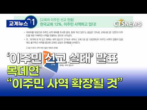 목데연 ‘이주민 선교 실태’ 발표…이주민 사역 확대 전망 (이필립)ㅣCTS뉴스 기독정보닷컴 02.12 23:37 [앵커] 한국교회 10곳 중 1곳은 이주민 사역을 진행하고 있고, 이주민 목회는 앞으로 더욱 확장된다는 전망이 나왔습니다. 목회데이터 ... 0