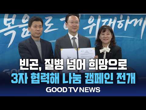 빈곤·질병 넘어 희망으로…3자 협력 ‘나눔 캠페인’ 전개 goodtvnews 04.10 22:00 빈곤과 질병, 가난으로 고통받는 이웃들에게 희망을 전하기 위해 GOODTV와 산성교회, 월드비전이 힘을 모으기로 했습니다. 협약에 ... 0