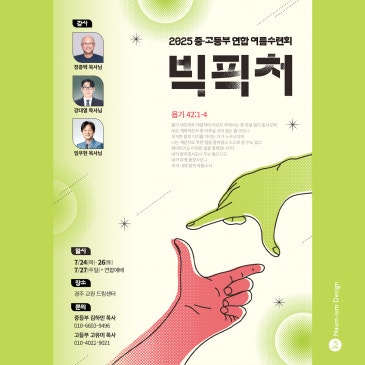 샘플번호 01260 중고등부 연합 여름 수련회 빅픽쳐 BIG PICTURE 디자인 의뢰 방법 아래 링크를 통해서 나음과이음 홈페이지로 이동 후 서식을 작성해 주시면 확인 후 연락드…