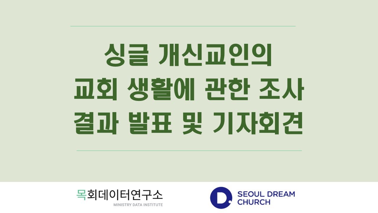 싱글 개신교인의 교회 생활에 관한 조사 결과 발표 및 기자회견 [서울드림교회, 목회데이터연구소]