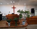 예배에 필요한 장의자, 강대, 앰프, 마이크, 피아노, 프로젝터, 헌금통 두고갑니다.