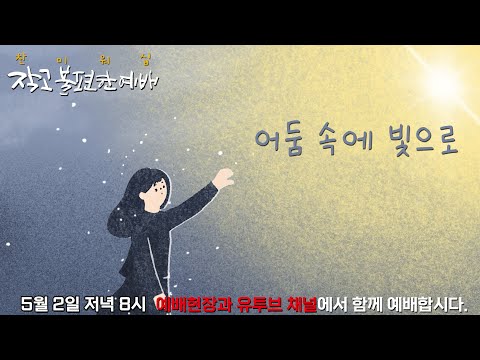 2023년 5월 2월 찬미워십 작고불편한예배 어둠 속에 빛으로 기독정보닷컴 2023.05.01 13:25 2023년 5월 2일 저녁 8시에 작고불편한예배가 시작됩니다. 오늘부터 작고불편한예배는 현장 예배와 온라인예배가 동시에 진행됩니다 ... 0