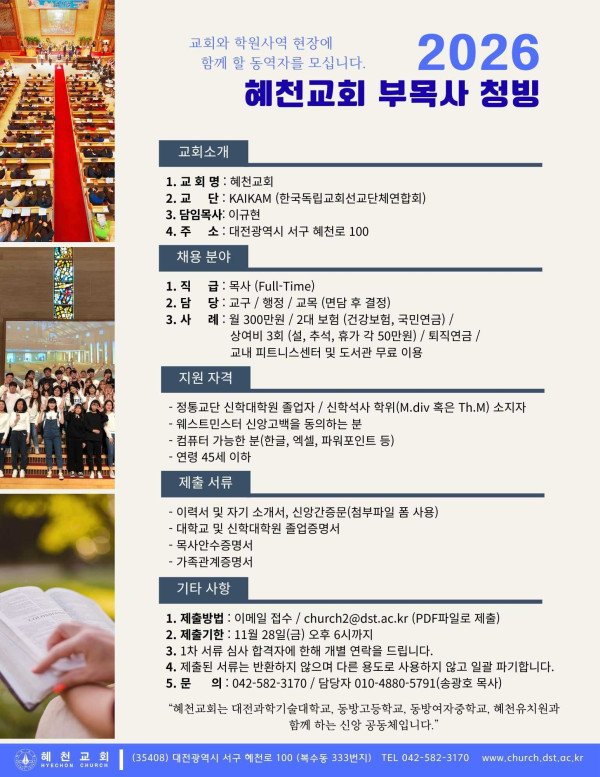 혜천교회 부교역자 청빙
