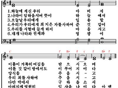 하늘에 계신 아버지 이름을 거룩하사 주님나라 임하시고 뜻이 이루어 지이다일용할 양식 주시고 우리들의 큰 죄 다용서 하옵시고 또 시험에 들게 마시고악에서 구원하소서 대게 주의 나라 …