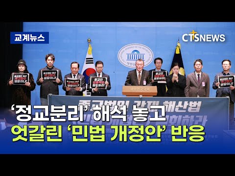 대광기총 등 “종교단체 해산법 철회하라”며 반발 (박주성)ㅣCTS뉴스 기독정보닷컴 01.30 16:08 [앵커] 대한민국광역기독교총연합회 등 교계 연합 단체들이 무소속 최혁진 의원이 대표발의한 '민법 일부개정법률안' 일명, '통일교· ... 0