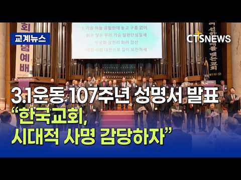 3.1운동 107주년 “한국교회, 시대적 사명 감당하자” (김인애)ㅣCTS뉴스 기독정보닷컴 9시간전 [앵커] 3.1운동 107주년을 맞아 한국교회가 일제히 성명서를 발표했습니다. 3.1운동 정신을 이어받아 연합의 본이 되고 시대적 사명을 ... 0