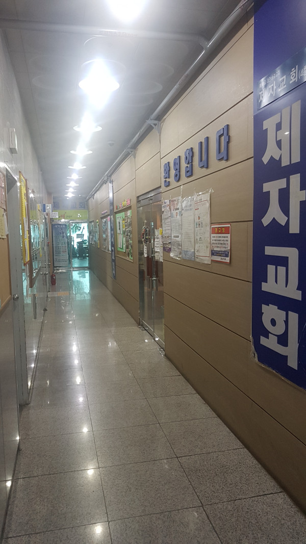 사무실 2개. 소그룹룸2개. 유아예배실 1개. 카페 겸 식당. 주방1개. 카페주방1개.