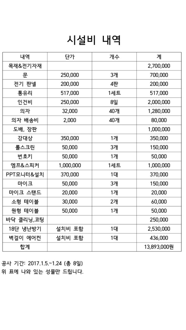 (맨 아래 시설비 내역서 첨부)
