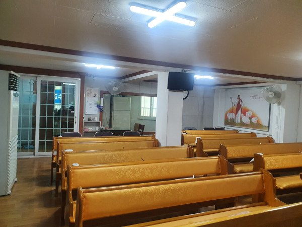시설: 강대상, 음향시설일체, 반주기, 에어콘 온풍기겸용