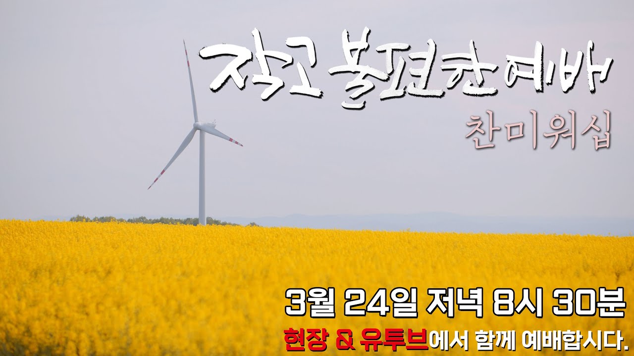 2025년 1월 20일 밤 8시에 찬미워십 작고불편한예배가 온라인으로 열립니다. 함께 예배합시다. songlist 눈을 들어 하늘 보라 옳은 길 ...